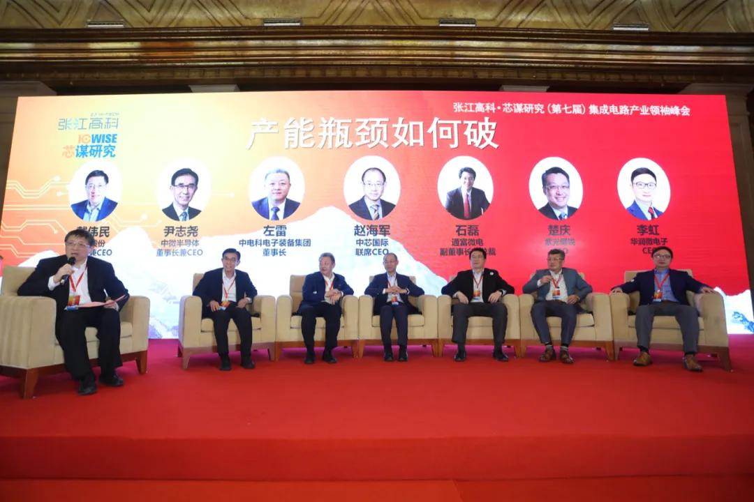 “產能瓶頸如何破”論壇由芯原股份創始人、董事長兼總裁戴偉民主持,中微半導體董事長兼CEO尹志堯、中電科裝備集團董事長左雷、中芯國際聯席CEO趙海軍、通富微電副董事長兼總裁石磊、紫光展銳CEO楚慶、華潤微電子CEO李虹進行了一場頭腦風暴。