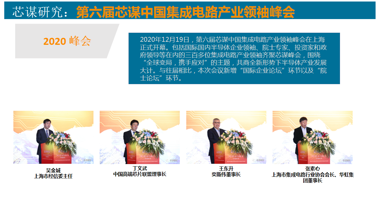 2020年12月19日,第六屆芯謀集成電路產業領袖峰會在上海正式開幕。包括國際國內半導體企業領袖、院士專家、投資家和政府領導等在內的三百多位集成電路產業領袖齊聚芯謀峰會,圍繞“全球變局,攜手應對”的主題,共商全新形勢下半導體產業發展大計。與往屆相比,本次會議新增“國際企業論壇”環節以及“院士論壇”環節。