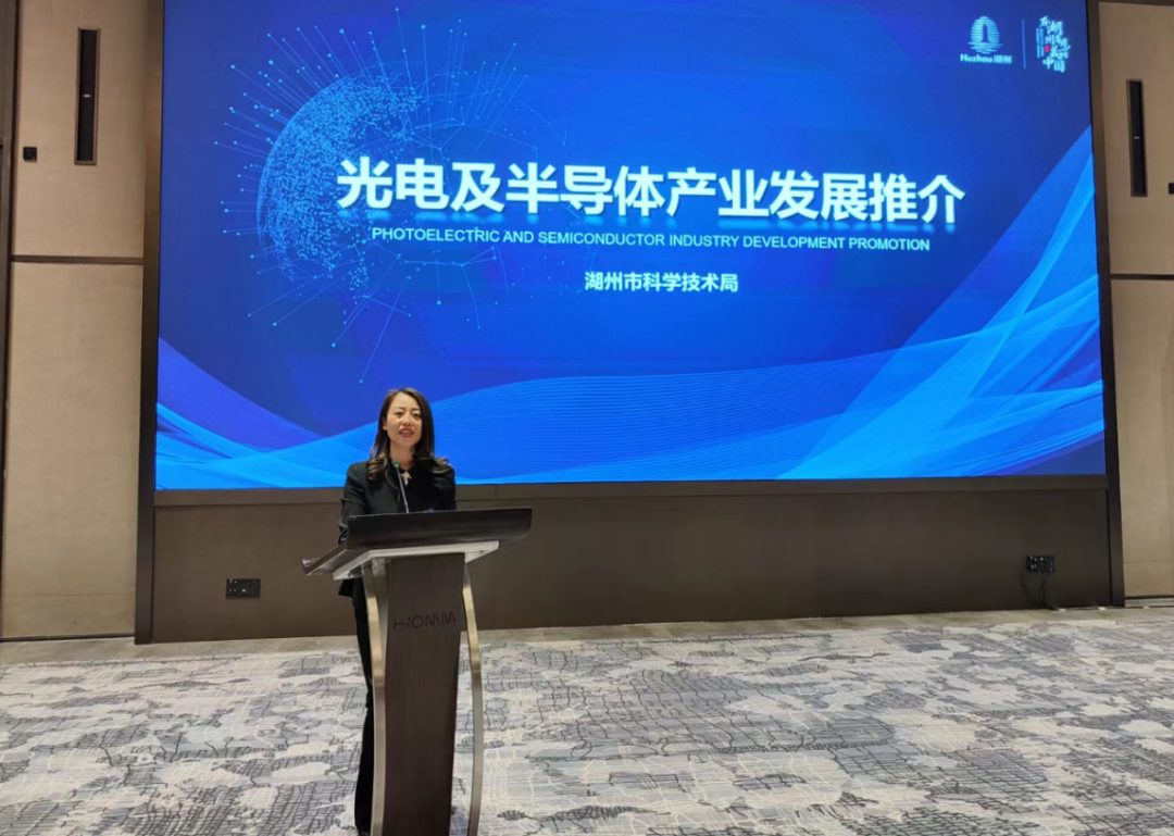 湖州市科學技術局局長羅芳在做湖州市光電及半導體產業推介時表示,湖州市在現有射頻前端、化合物半導體材料、光電半導體用耗材產業特色前提下,以及擁有成熟面板顯示屏廠房連片化工園區的優勢下,力爭在用五年時間實現產業規模達1000億元。通過打造區縣平臺;布局產業園區、集中要素資源;打造科研平臺、導入創新資源;迭代體制機制,優化助企服務等策略,從人才、審批流程、成本等多方面助力產業發展。