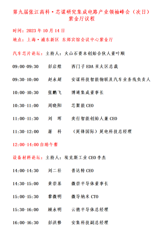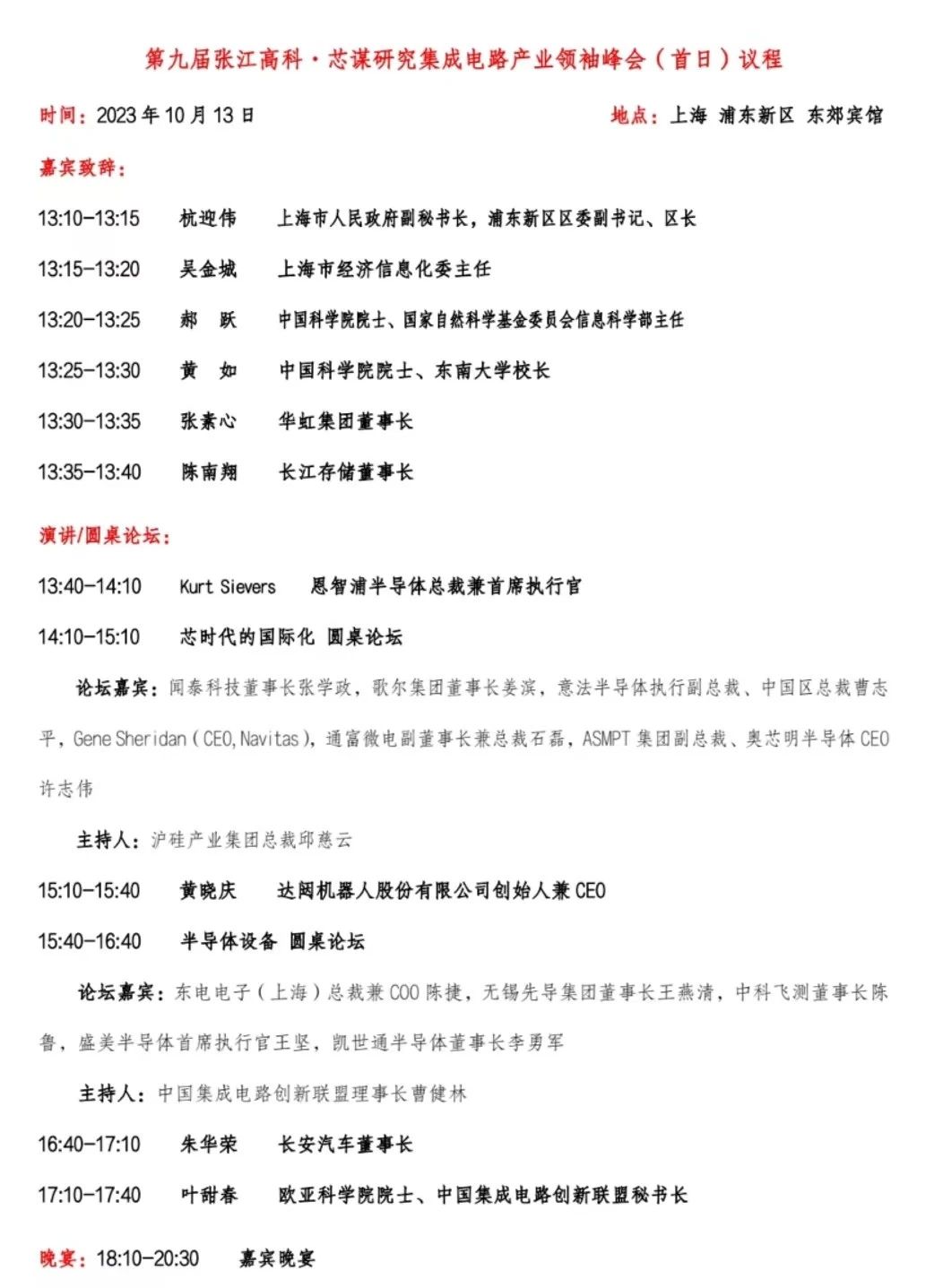 出席企業:環旭電子、啟爾機電、盛世投資、卓勝微、ASMPT/奧芯明半導體、亞舍立半導體(Axcelis)、微崇半導體、中科飛測、中科漢天下、勝科納米、盛美半導體、泛林半導體、華大九天、芯耀輝、徐州博康、無錫先導/微導納米/天芯微、普達特、西門子、芯導科技、瞻芯電子、承芯半導體、艾森半導體、芯和半導體、深迪半導體、合見工軟、安謀科技、愛芯元智、國微芯、飛書、全芯智造、凱世通、泓明供應鏈、應用材料、奕斯偉、云英谷科技、上汽英飛凌、地平線、芯華章、云德半導體、卓海科技、美芯晟科技、奕行智能、魅杰光電、延鋒國際、安世半導體等。