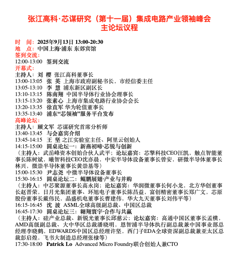 第十一屆張江高科·芯謀研究集成電路產業領袖峰會圓滿舉行